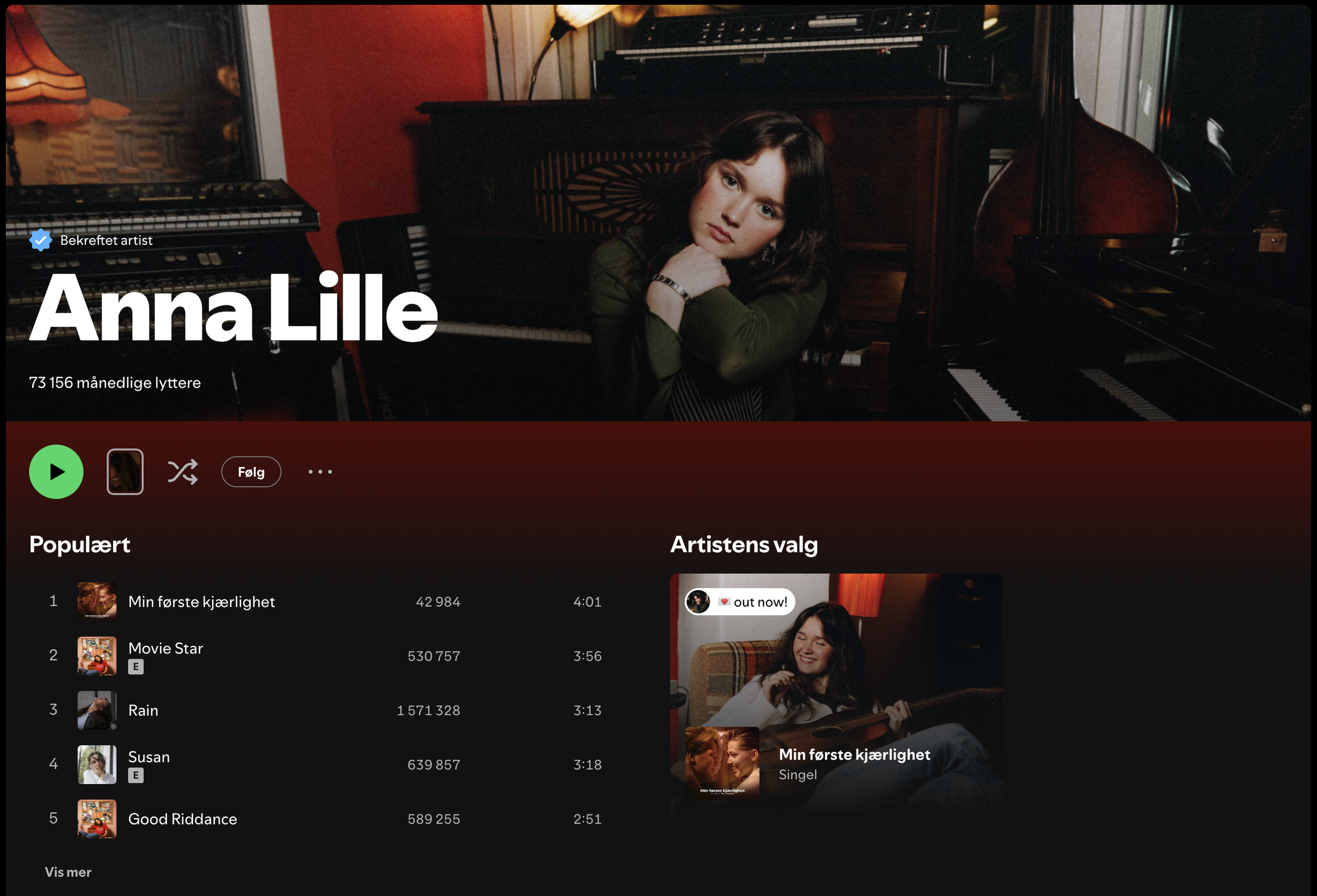 Pressebilder og promo for Anna Lille i forbindelse med utgivelse av “Min første kjærlighet” som ble gitt ut i november. Låten er laget for filmen med samme navn som gis ut neste år. Låten er et cover av originalen til Jan Teigen.